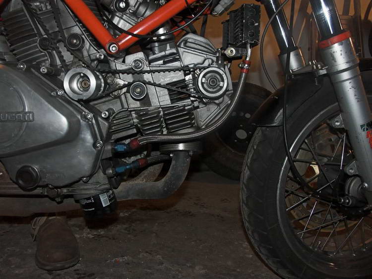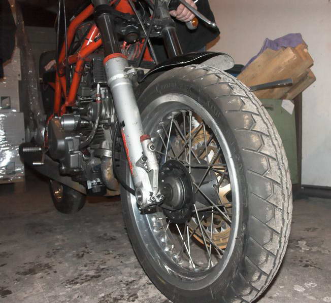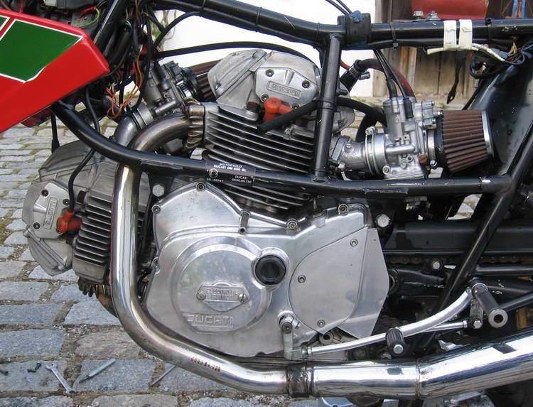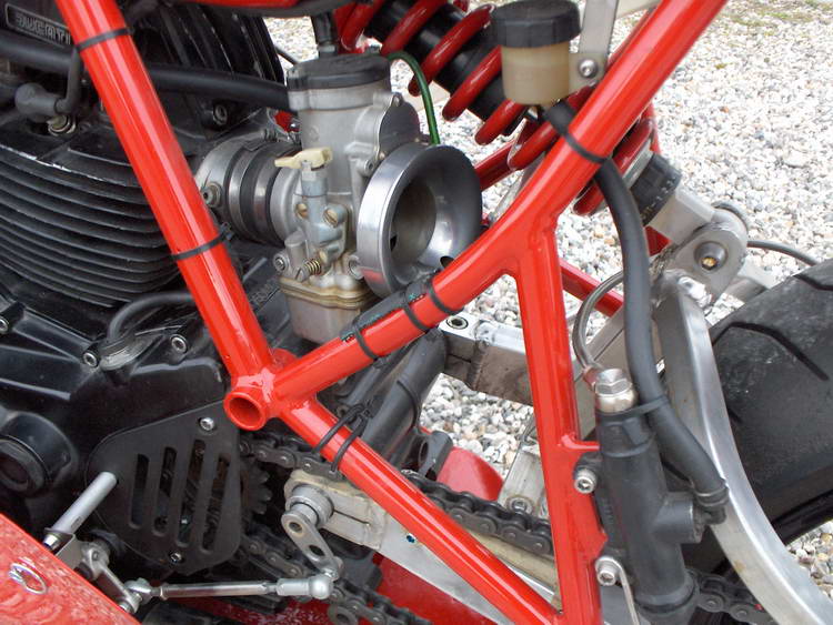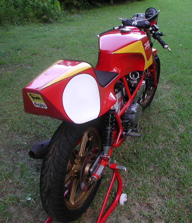 einem 650 cc Motor aus einer Cagiva Alazzurra. Die Räder stammen