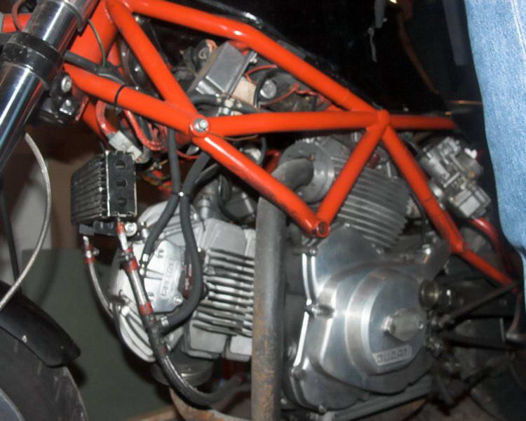 Enrico Varrica (CH) vom 03.12.2007 Enrico hat sich nach langen Jahren des Wartens nun endlich zu Beginn 2007 zum Kauf einer Ducati 750 Sport entschieden. Anfang Dezember hat er sich dann auch gleich noch eine umgebaute 650er Pantah zugelegt. Diese Maschine hat gerade mal 26.000 km auf dem Tacho, vom Originalzustand ist sie jedoch inzwischen weit entfernt. |