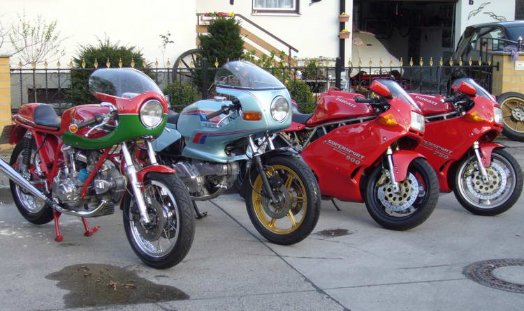 Gernot Mann vom 04.10.2007 "Ich sende Dir einmal Bilder meiner Ducati 900 MHR, Baujahr 1984. Den Umbau haben wir im Winter 06/07 durchgeführt. Der Motor hat einen E- und einen Kick-Starter. Die Sitzbank/Halbschale sind von Liengme, der Tank stammt von einer SS... Die Pantah ist von meiner Freundin, die zwei weiteren Ducs sind für den täglichen Betrieb." |