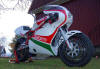 Martin Denley (GB) vom 06.05.2007 Diese Ducati war ursprünglich eine originale Standard 500 SL Pantah. Die letzten 5 Jahre hat er versucht das Bike im Stile der ersten "Werks Renn-Pantahs" umzubauen, den Vorgängern der TT2. Es wird wohl noch einige Jahre dauern, bis sein Werk vollendet ist, Lackierung, Bremsen u.s.w. ... Er möchte das Fahrzeug schließlich auch einmal im Rennbetrieb bewegen! |