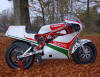 Jörg Laibacher vom 06.01.2008 "Die DB1 hat 850 ccm genauso wie Lucchinellis Werks-F1 in Daytona, eine 2in1-Auspuffanlage und eine schwimmende Oro-Bremsscheibe hinten. Die Bereifung wurde auf Continental abgeändert. Die Fahrleistung beträgt nur 8.000 km, der Motor hat rund 85 PS. Die Maschine wurde im Werk vor 2 Jahren neu lackiert. Sie bekam auch ein Verkleidungsunterteil mit geändertem Einlass wie an der DB 1 SR, der Auspuff ist ähnlich der originalen 2in1 der SR. Das Federbein ist ein verbessertes Teil von Marzocchi. Der Zustand der Maschine ist sehr gut und sie fährt sich auch wirklich prima." |